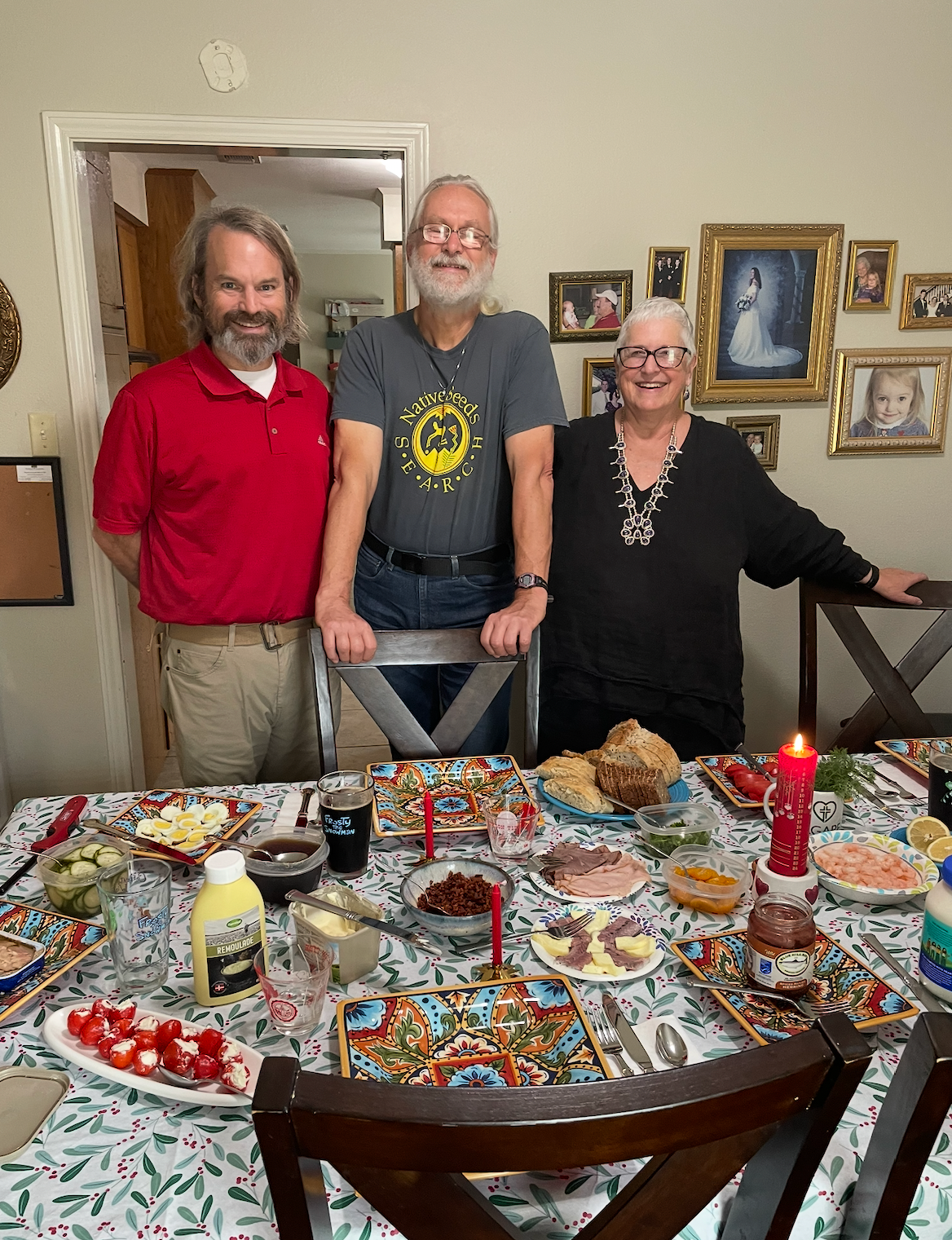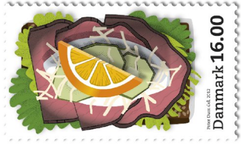 Martin described to me how the lunch was an ordinary part of his childhood Christmas, and it only made sense to continue the tradition when he moved to the U.S. Though the lunch has not particularly changed over the years, Martin noted that some items are harder to find in Louisiana than they would be in Denmark (but interestingly there is a store that sells pickled herring in New Orleans!). He shared a detailed document with me, explaining each facet of the Danish Christmas Lunch which usually “consists of smørrebrød, which roughly translates to ‘buttered bread’ and it can be traced back to the Icelandic Sagas.” The smørrebrød is typically topped with cold cuts and various toppings. Martin noted that his favorite type is the "Dyrlægens natmad" (the Veterinarian's Night Snack): “rye bread, fat, and paté on which is placed aspic and a slice of salted meat.” There’s even one depicted on a Danish stamp!