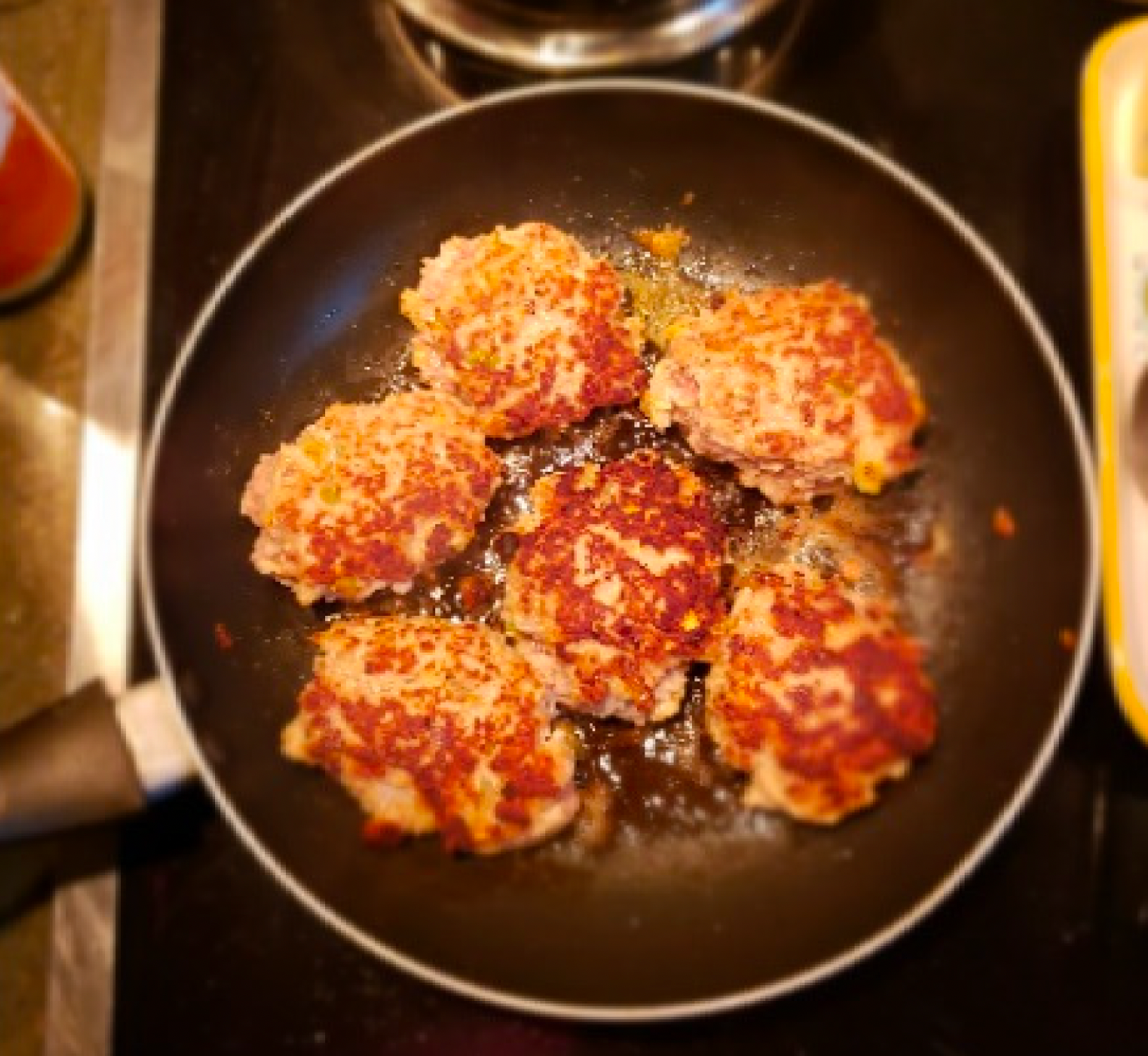 Mix all the ingredients together in a large bowl using a spoon or hand mixer. Heat up a frying pan with butter or oil. Use a spoon to form the meatballs. If you dip the spoon in a glass of water before you form a meatball it will be easier because the meat will not stick to the spoon. Fry the meatballs for about 5-10 minutes depending on the amount of heat you give them. It is best to flip the meatballs often in order to give then an even crust.
